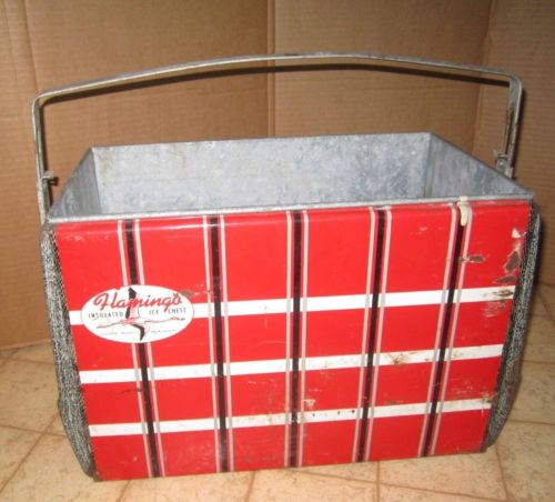 Title (ebay affiliate link): Vintage Mid Century Galvanized Flamingo Ice Chest Cooler Red Plaid Antique