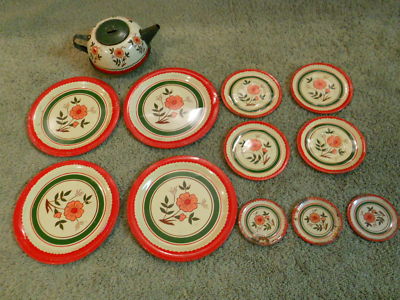 LOT of 12 Vintage Metal Tin Childrens Toy Play Dishes