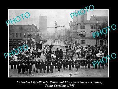 OLD LARGE HISTORIC PHOTO OF COLUMBIA SOUTH CAROLINA, POLICE & FIRE BRIGADE c1908
