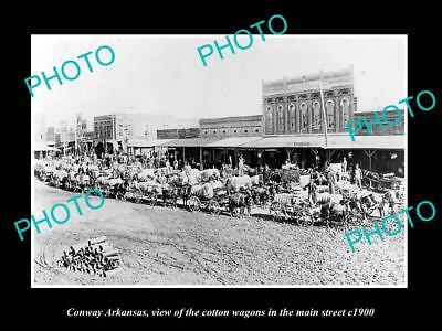 OLD LARGE HISTORIC PHOTO OF CONWAY ARKANSAS, THE COTTON WAGONS IN MAIN St c1900