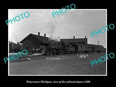 OLD LARGE HISTORIC PHOTO OF WATERSMEET MICHIGAN, RAILROAD DEPOT STATION c1900