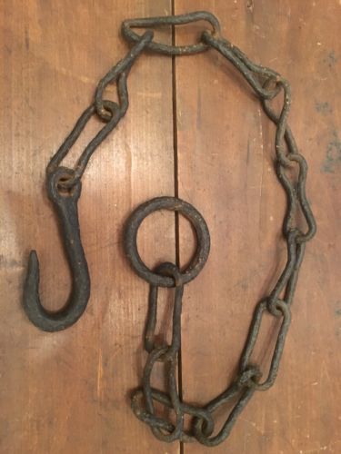Title (ebay affiliate link): Old Cast Iron Hand Forged Chain With Hook And Ring Antique Repurpose Seampunk