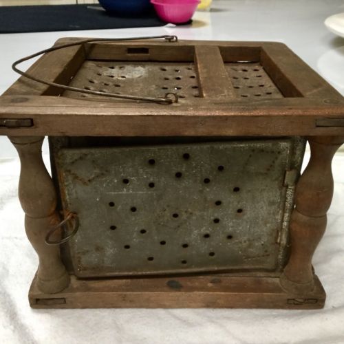 Title (ebay affiliate link): Antique Primitive Foot Warmer- Punched Tin and Wood Primitive