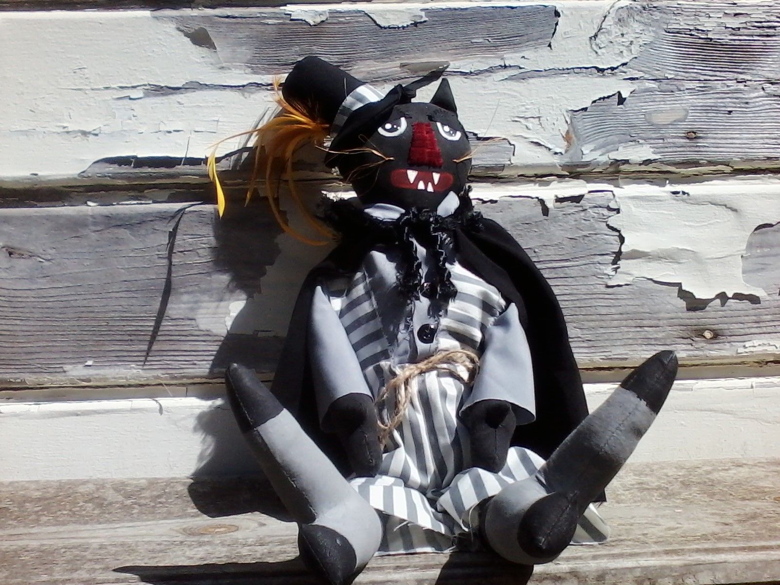 Title (ebay affiliate link): Primitive Halloween Dracula Kitty Cat Doll Ornie Shelf Sitter Decor