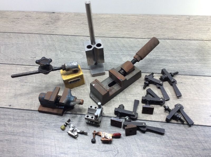 Title (ebay affiliate link): Lot Machinist Tools V Block Enco Magnetic Base Milling Hold Down Wabeco Vise