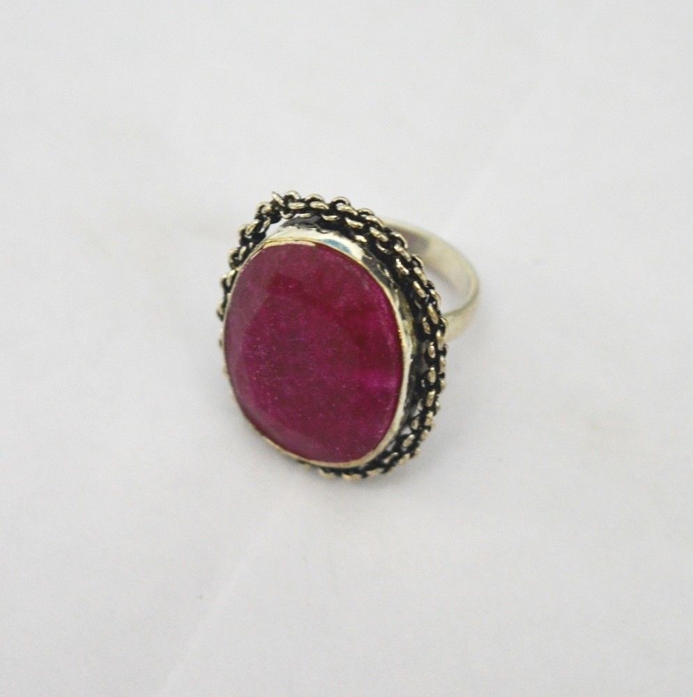 Antique Silver Plated Beautiful Red Stone Amethyst Ring A-620 US-6.5
