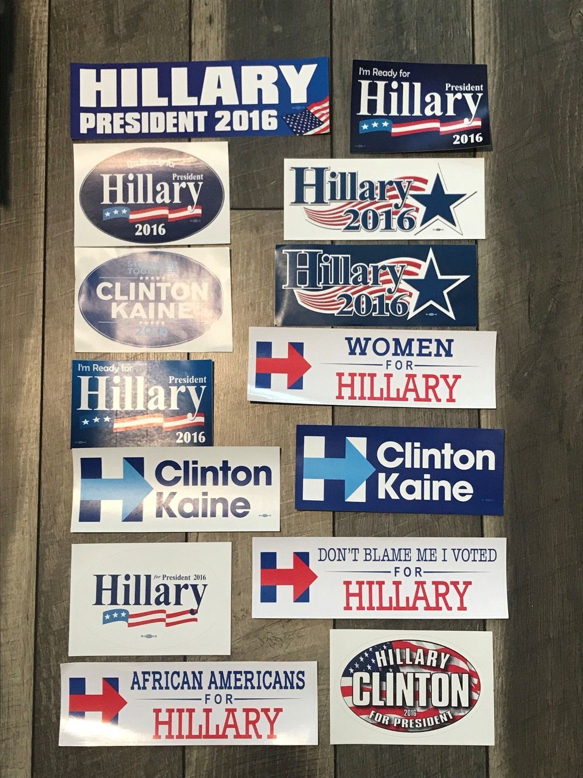 Title (ebay affiliate link): Lot Collection of 14 Hillary Clinton Tim Kaine For President Bumper Stickers