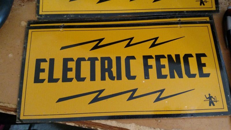 Title (ebay affiliate link): 1960s Vintage Electric Fence Sign Lightning Bolts galvanized metal LOT OF 10