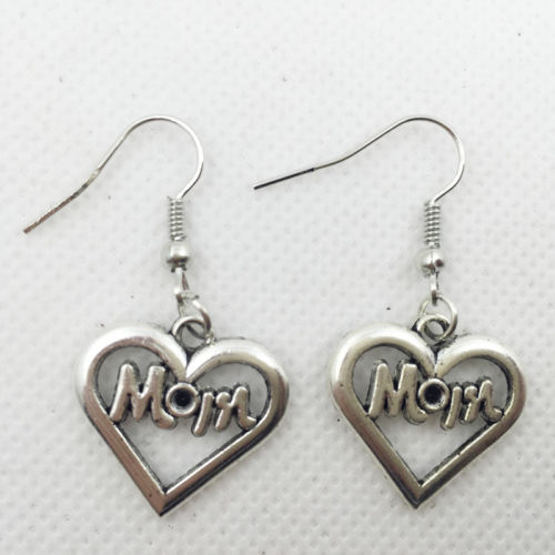 Title (ebay affiliate link): New 1 pair Free shipping Fashion Antique silver Jewelry mom heart earring