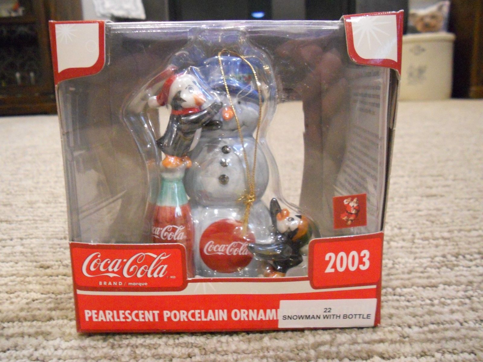 Title (ebay affiliate link): 2003 Coca Cola Pearlescent Porcelain Christmas Ornament Snowman w/Bottle #22 NIB