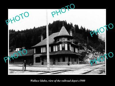 OLD LARGE HISTORIC PHOTO OF WALLACE IDAHO, VIEW OF THE RAILROAD STATION c1900