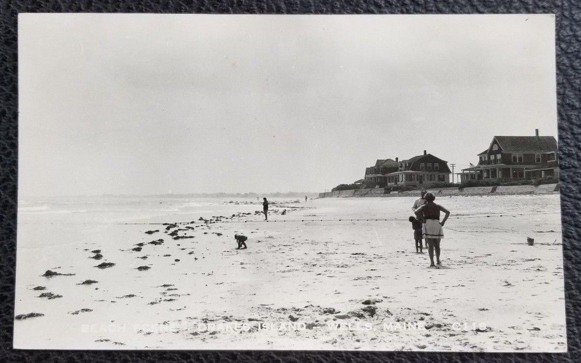 Title (ebay affiliate link): Vintage RPPC Postcard~Wells, York County, Maine~Drakes Island~Beach Scene