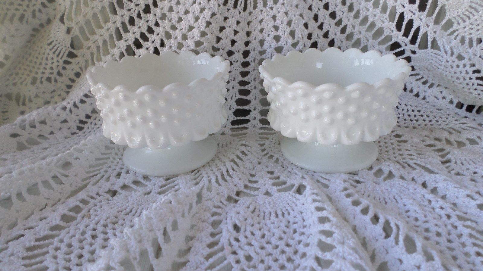 Title (ebay affiliate link): Vintage Fenton Milk Glass Hobnail Scallop Edge Footed Candle Stick Holders