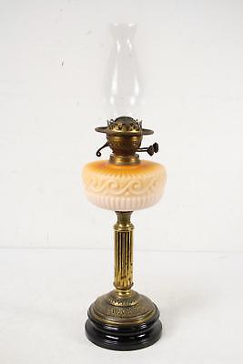 Vintage Brass Base Pink Milk Glass Duplex Gas Oil Table Hurricane Lamp