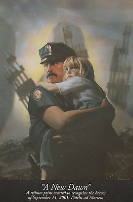Dan Fell "A New Dawn" tribute print recognize 9/11 heroes postcard, Police; 0047