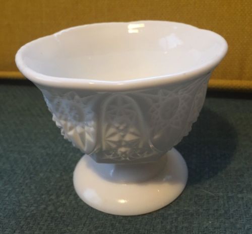 Title (ebay affiliate link): Vintage Fenton style white milk glass small footed candy dish / dessert daisy