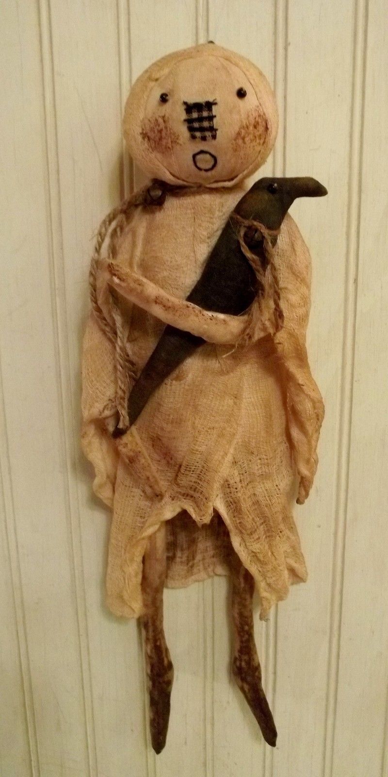 Title (ebay affiliate link): Primitive Grungy Little Ghostie Ghost Halloween Doll & His Crow