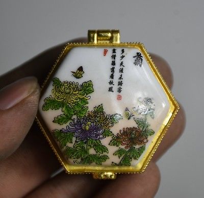 Title (ebay affiliate link): 5cm Old Chinese Wucai Porcelain chrysanthemum Flower hexagon Jewelry box AA23