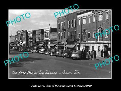 OLD LARGE HISTORIC PHOTO OF PELLA IOWA, THE MAIN STREET & STORES c1940