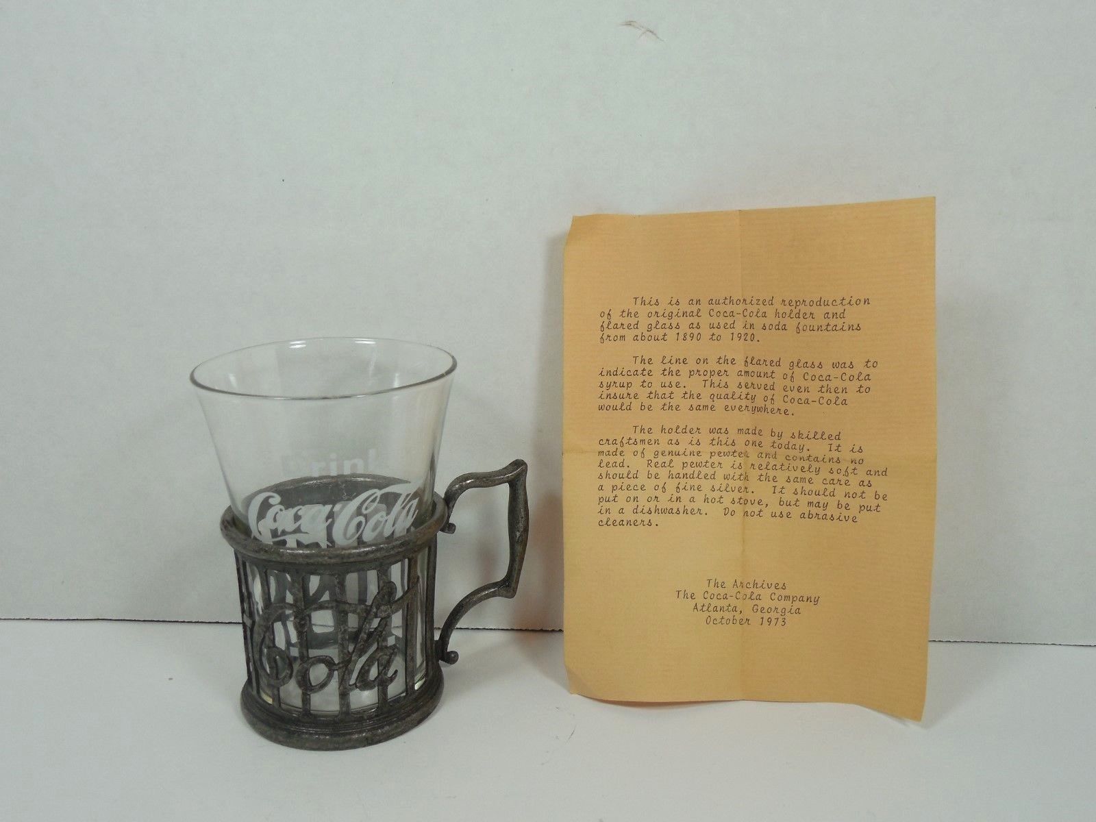 Title (ebay affiliate link): Coca Cola Soda Fountain PEWTER Coke Holder & "Drink Coca-Cola" Syrup Cup