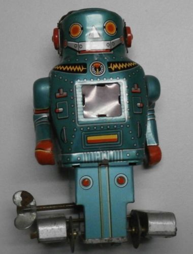 Vintage Tin Litho Wind Up Robot- Japan- 6" Tall