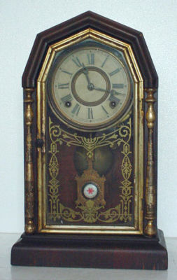 ANTIQUE WELCH EMPRESS VP GLASS PENDULUM MANTLE CLOCK