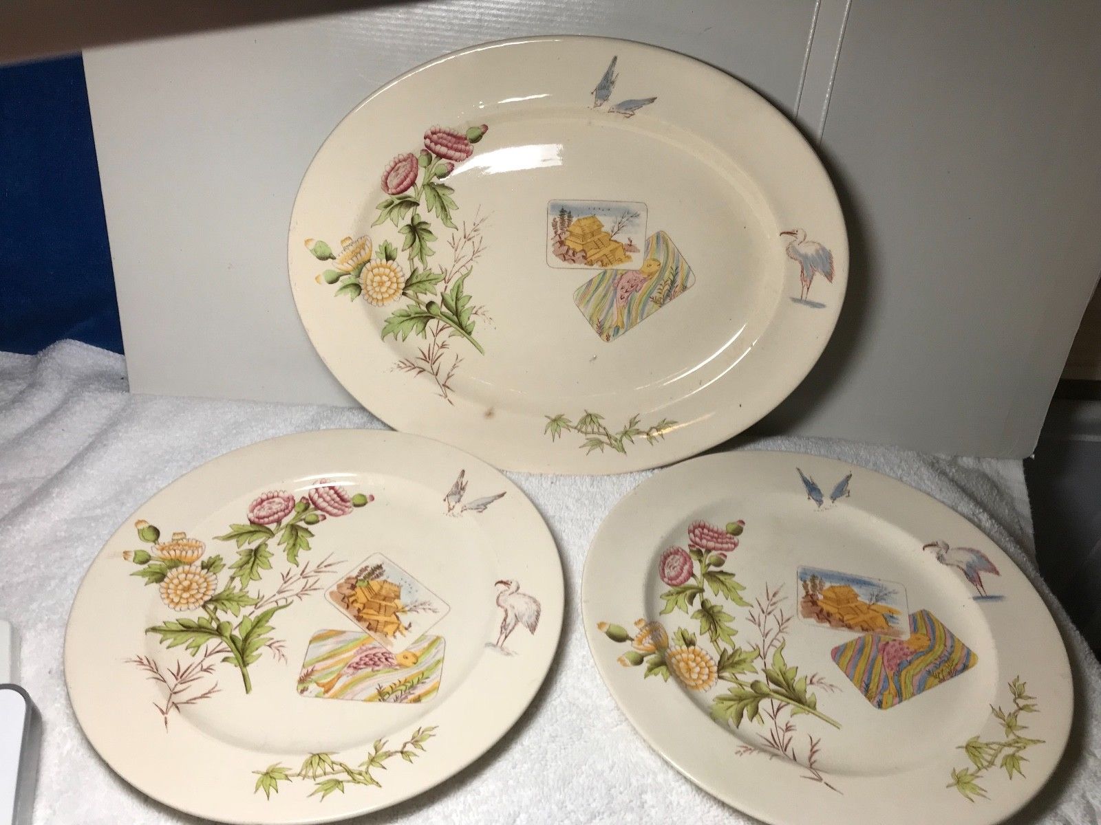 Title (ebay affiliate link): 3 ANTIQUE 1800s FURNIVALS PLATES - 1 PLATTER & 2 DINNER PLATES Crane Birds Fish