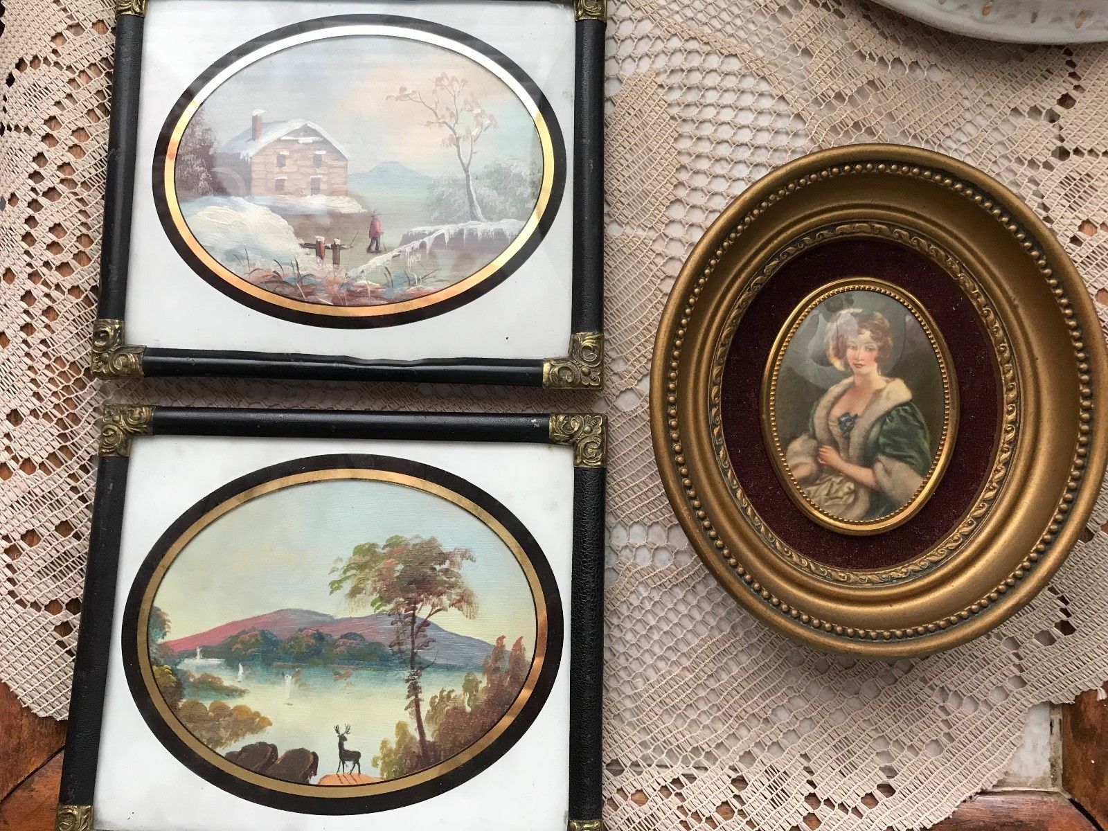 3 Vintage small picture frames 2 square 1 oval Nesbert