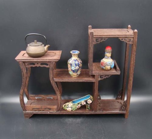Title (ebay affiliate link): Rare solid hardwood curio shelves Stand Shelf Handmade Carving Deco Art