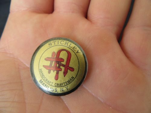 Title (ebay affiliate link): Vintage Stickley Handcraft Craftsman, Manilus, NY Advertising Pinback, Furniture