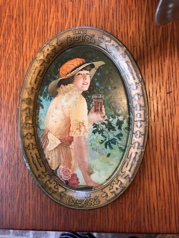 Title (ebay affiliate link): ANTIQUE ORIGINAL COCA-COLA ADVERTISING TIP TRAY ELAINE 1916 LITHOGRAPH SODA Oval