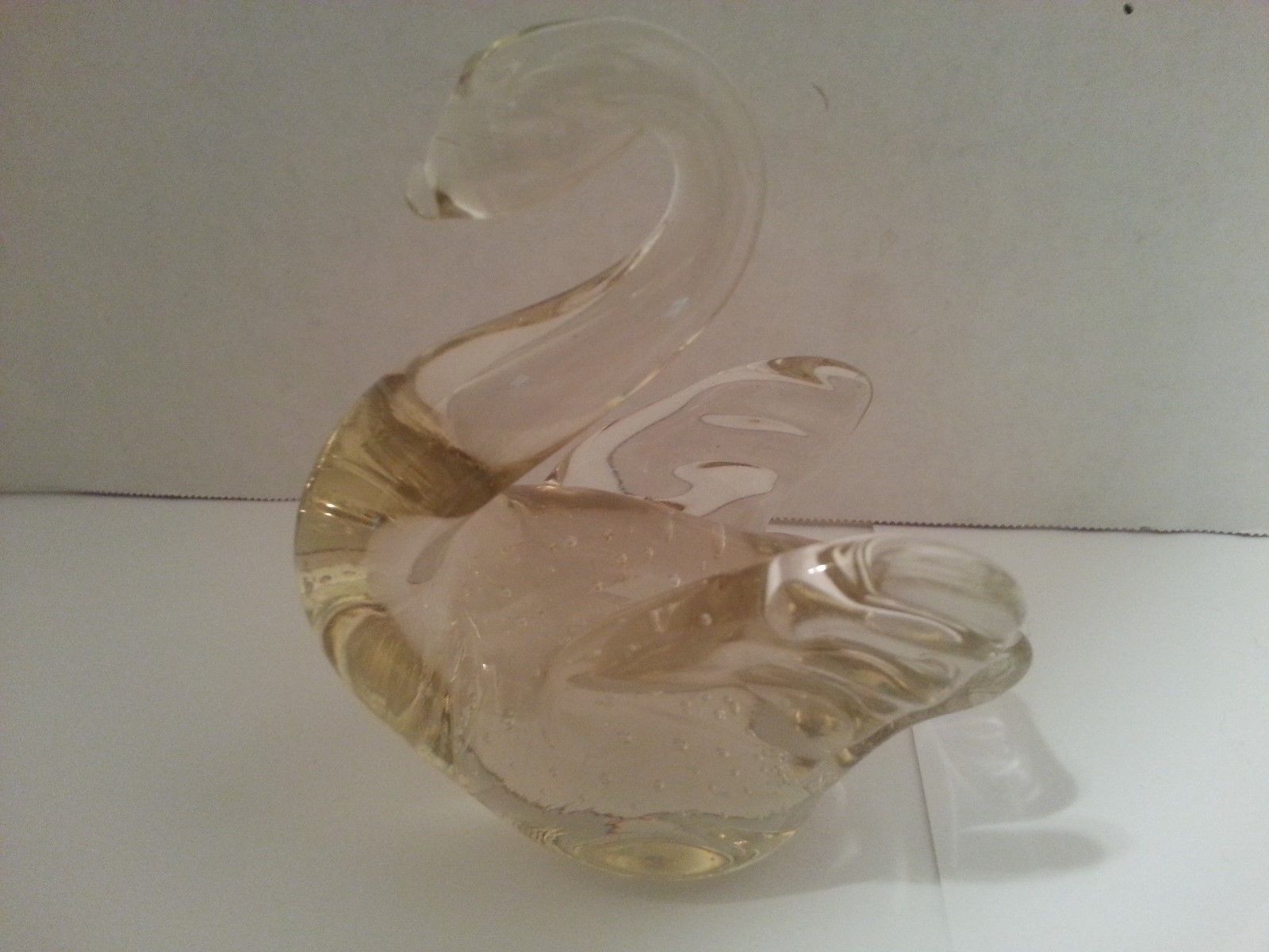 Title (ebay affiliate link): Clear Glass Swan Figurine Paperweight Heavy Solid Center Bubbles