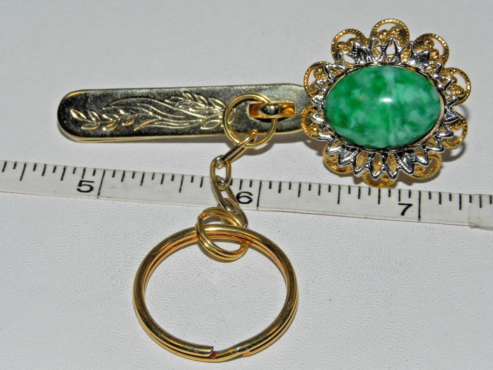 Vintage Gold Tone Green Stone King''s Key Finder