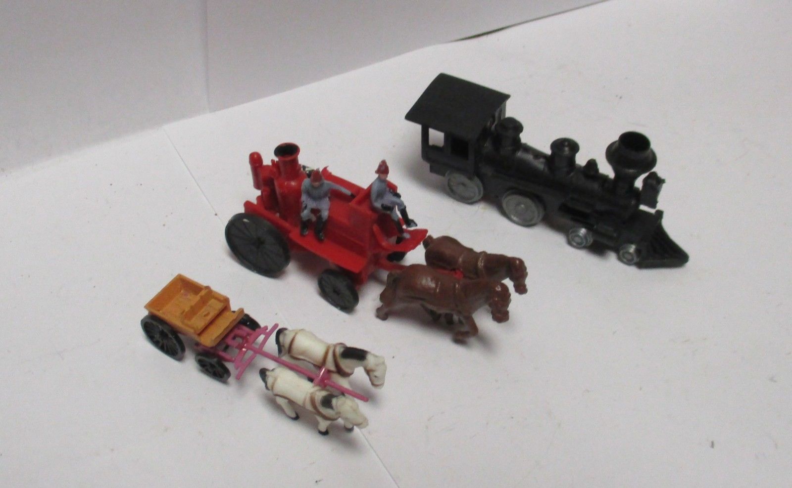 Title (ebay affiliate link): Old Toy Horse Drawn Wagon, Fire Wagon & Locomotive-1950''s-Christmas Garden Items