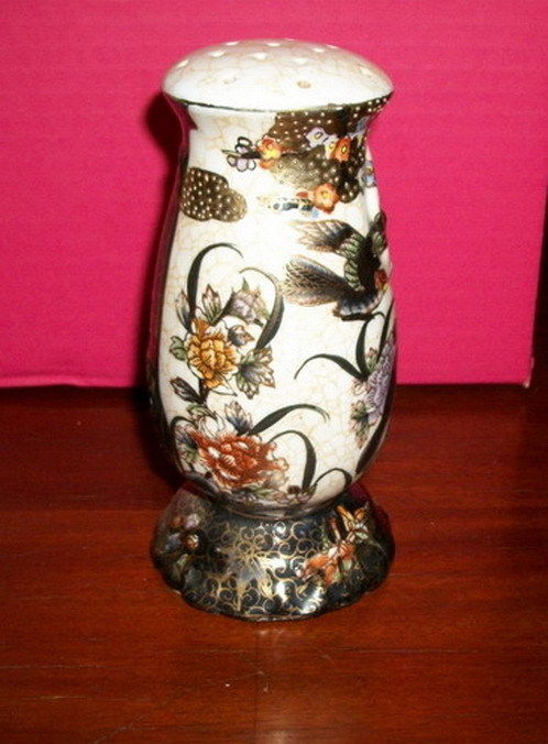 Satsuma Hand painted Hatpin Holder, Muffineer, Cinnamon, Sugar Shaker
