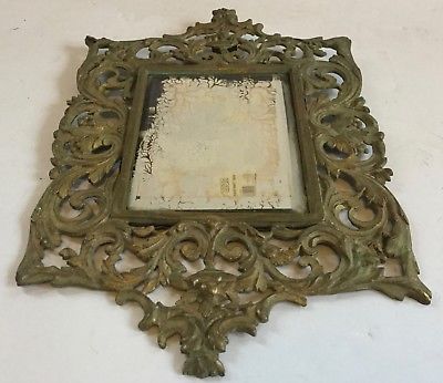 Early Bronze Bevelled Gold Gilt Hanging Mirror Signed AJM