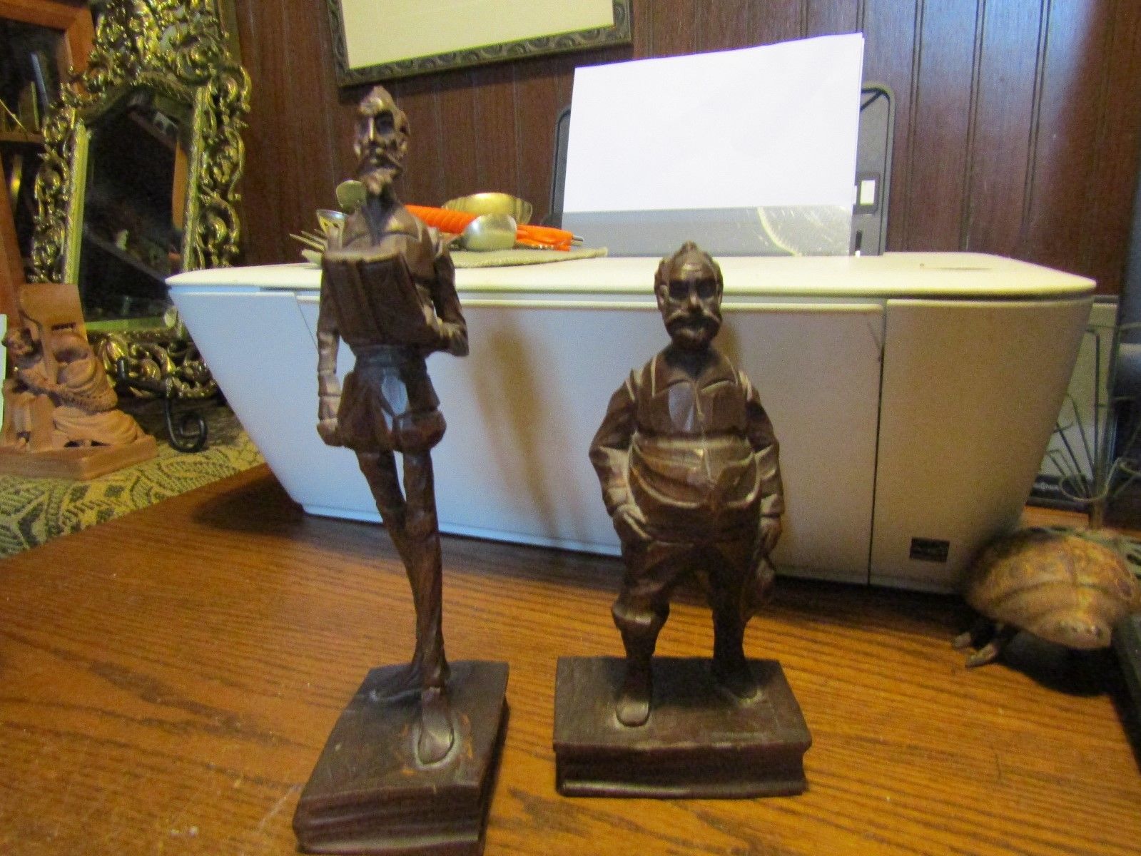 2 WOODEN CARVED FIG. 1 8" T 1 61/4 BOTH MEN STANDING ON BOOKS NICE