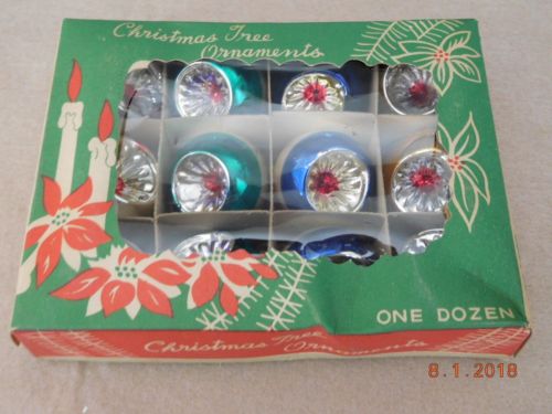 12 Vtg NOS Christmas Feather Tree Indent Ornaments Japan w Original Box #2