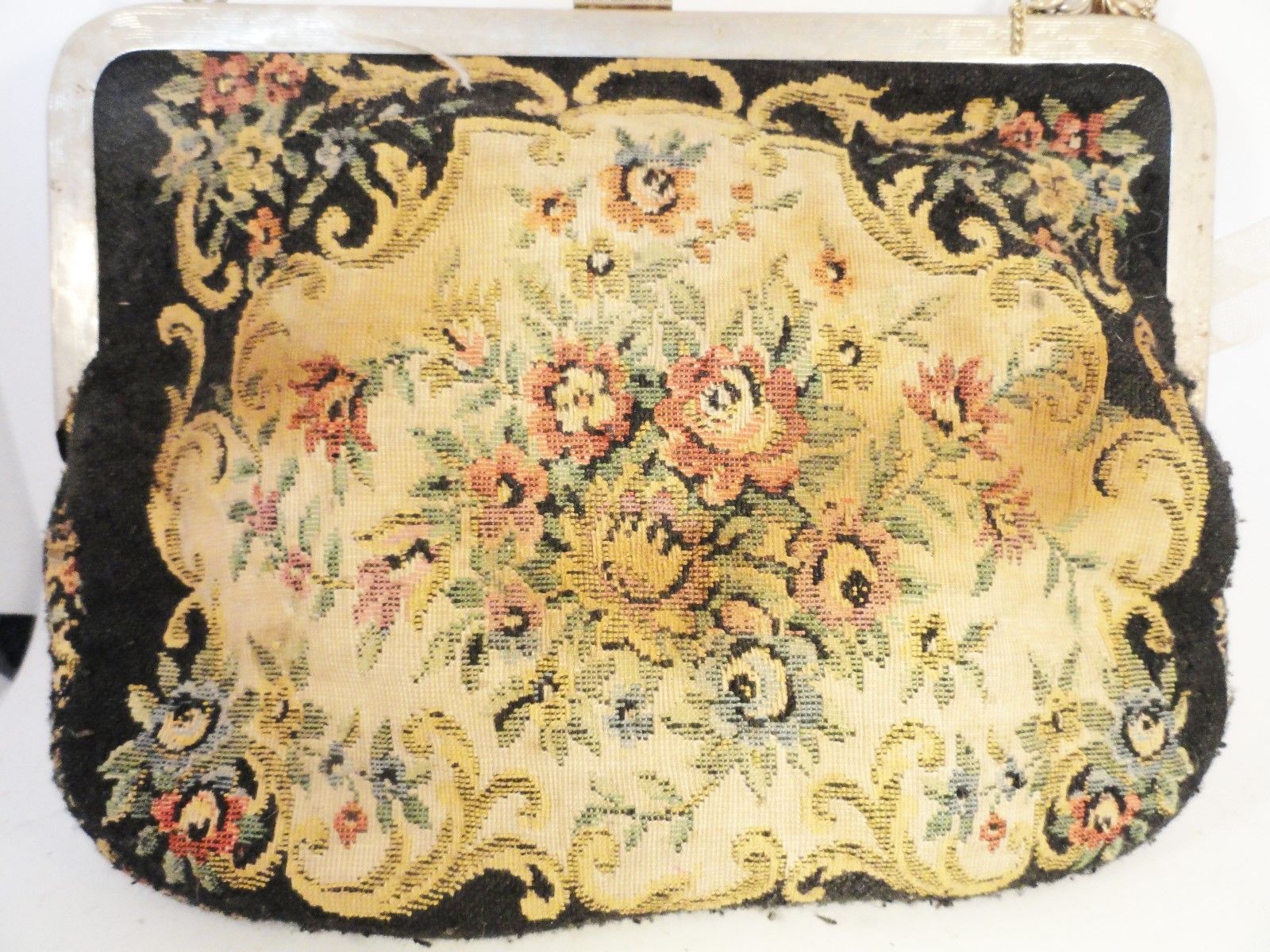 Title (ebay affiliate link): ANTIQUE FINE PETITE POINT PURSE~ USE FOR RECOVERING MINI FURNITURE