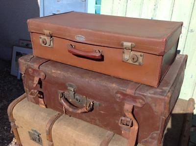 Title (ebay affiliate link): Vintage Suitcases x2 Over Wardrobe Storage 30''s Film Prop Leather Canvas Rustic