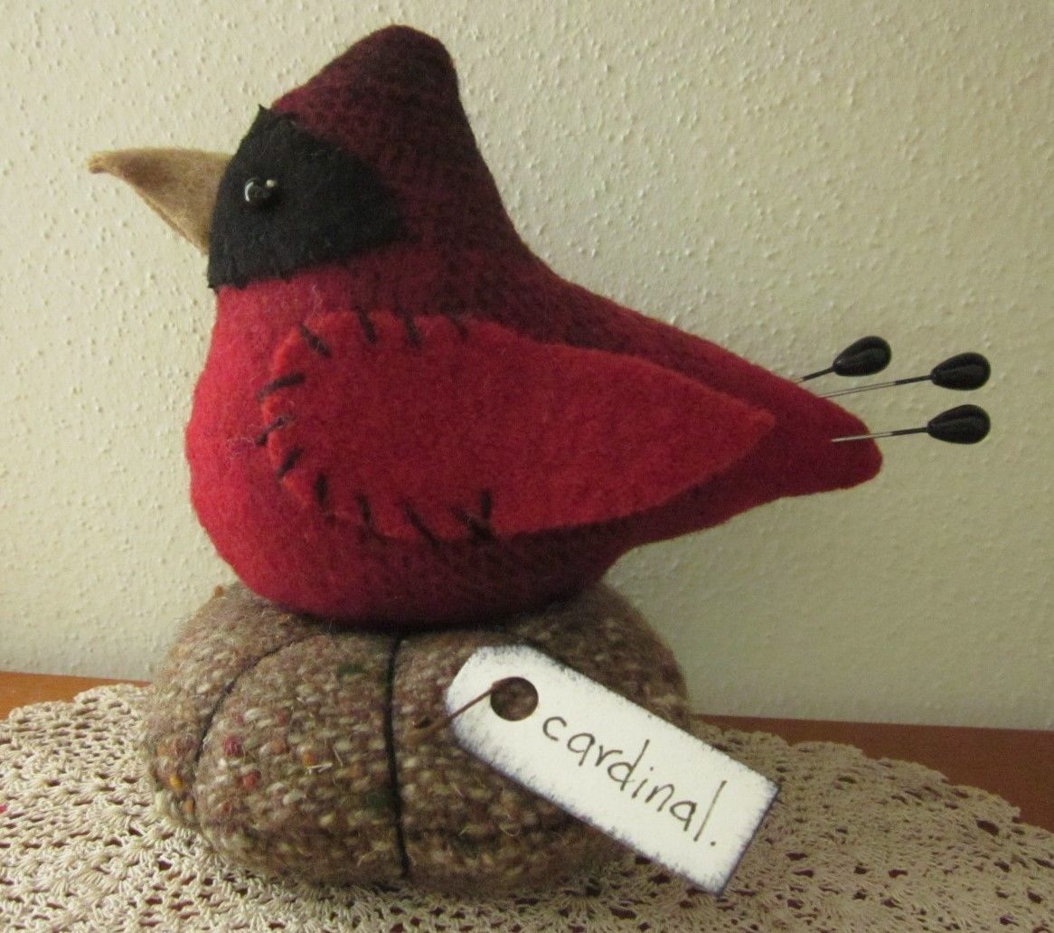 Title (ebay affiliate link): PRIMITIVE WOOL CARDINAL BIRD MAKE DO PIN CUSHION PFATT