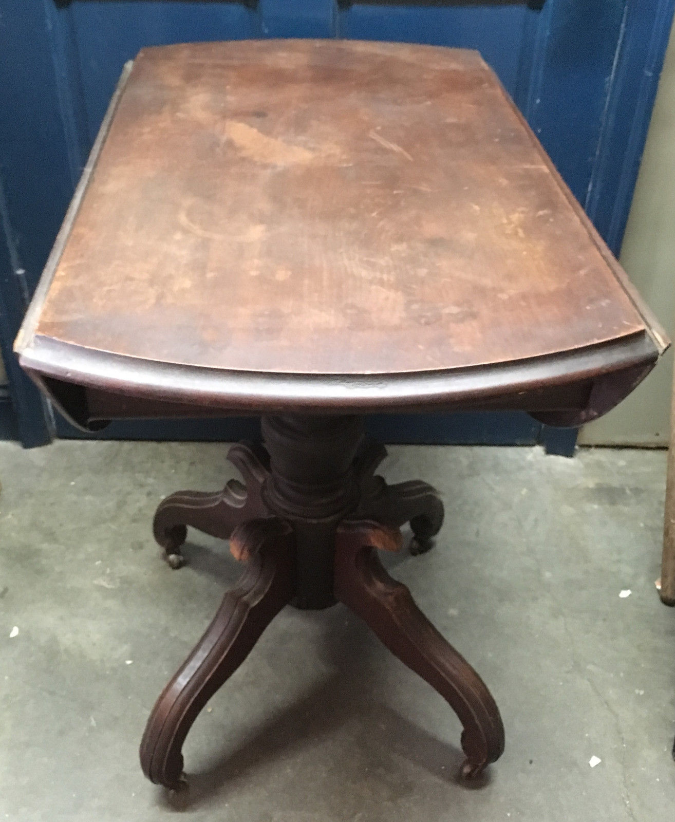 Title (ebay affiliate link): Antique Wood Drop Leaf Dining Table Pedestal Base PT2010