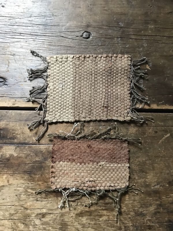 Title (ebay affiliate link): 2 SMALL Antique Hand Made Candle Mat Table Rug Brown Country AAFA Textile
