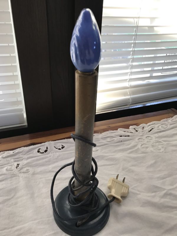 Title (ebay affiliate link): Antique Blue Cardboard W/ Blue Plastic Base Window Candle W/ Blue Bulb