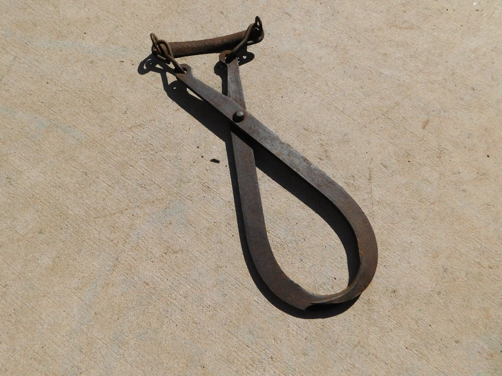 Antique Primitive Painted ICE BLOCK TONGS w/ Steel Chain & Handle