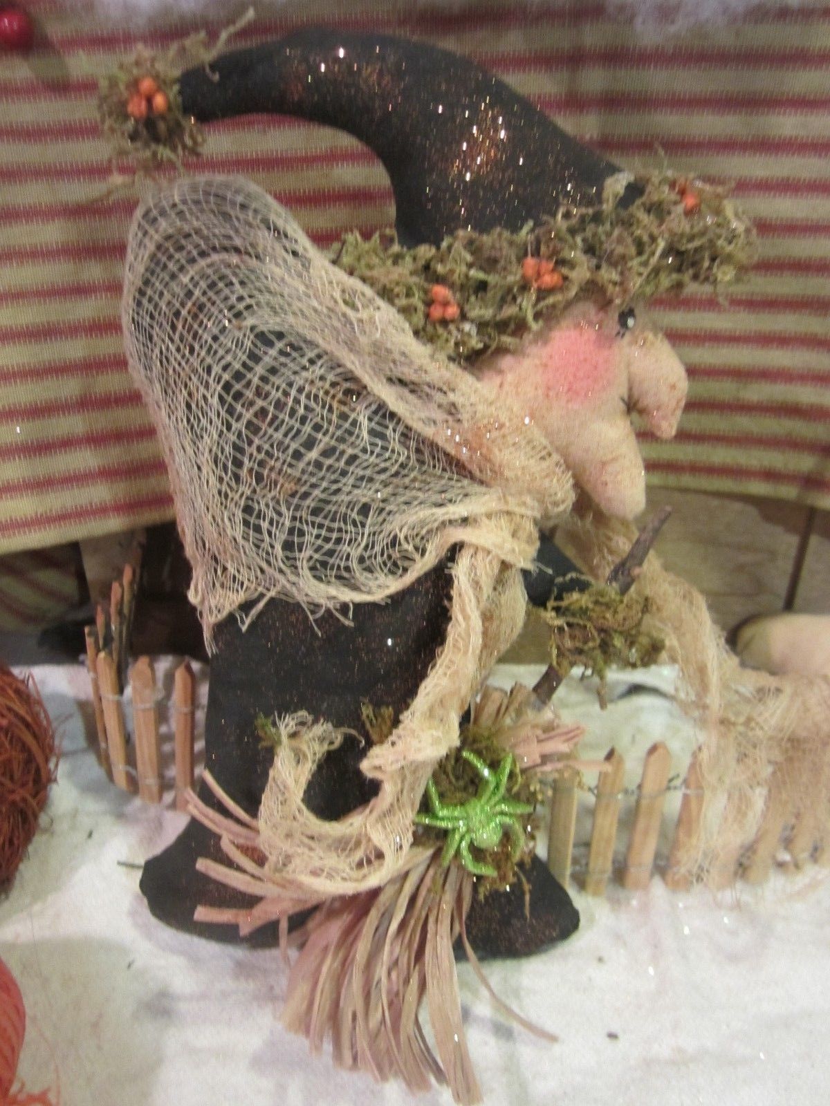 Title (ebay affiliate link): Primitive Halloween Witch with Broom - Ornie or Bowl Filler - Tuck #1662