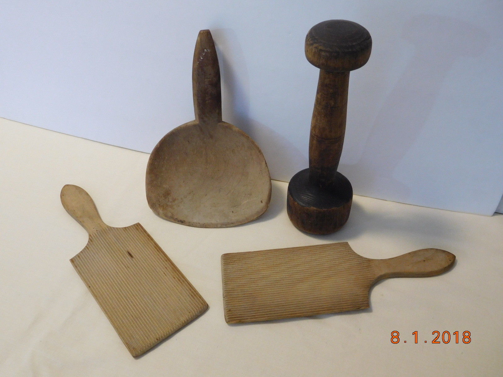 Antique Primitive Wood Kitchen Tools Butter Spoon Ribbed Paddles Masher
