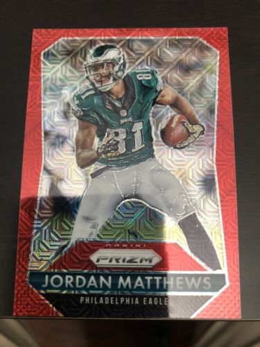Title (ebay affiliate link): 2015 Panini Prizm, Red Prizm Jordan Matthews Ser. #41/99. Card #191.