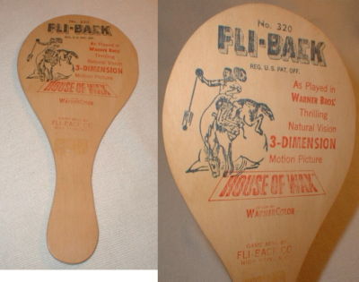 1953 FLI-BACK ADVERTISING MOVIE PADDLE TOY HOUSE OF WAX