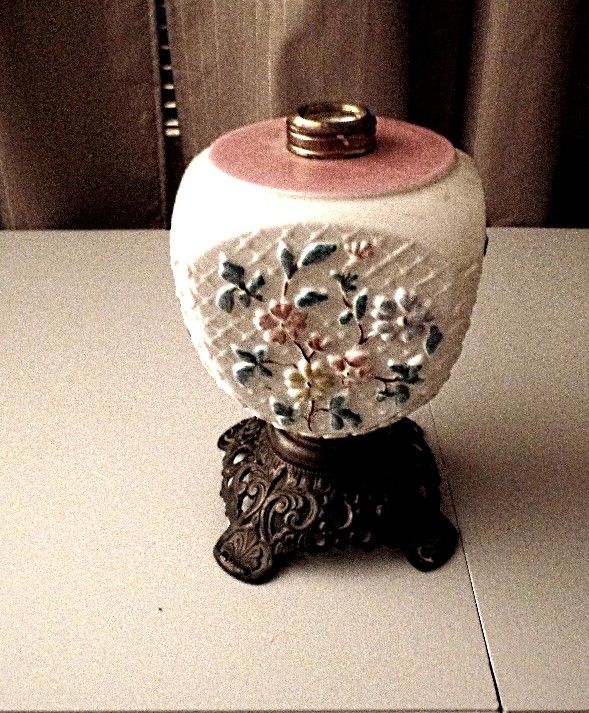 Title (ebay affiliate link): Antique Quarter Paneled Cosmos Milk Glass Oil or Electric Lamp Base